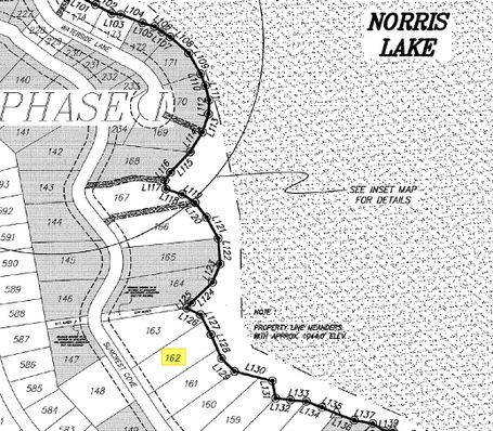 The waterfront lots in Clearwater Cove are steep. You will likely need a tram to get to your boat dock just like the neighboring waterfront lots in Clearwater Cove. The water on Norris Lake fluctuates throughout the year so the docks are floating docks. These are important considerations when choosing a lot as they add expense to the building project. However, as usual, there are benefits associated with the additional costs. First, with your home being high above the water, your view is wide and long. You won't likely notice any noise from the boats passing by, nor see the marina. Secondly, a steep lot correlates to year-around deep water at your dock. The water depth where a dock will likely be positioned is between 30' and 50' deep as measured by the seller in his boat. This water depth insures you'll have plenty of water when the TVA lowers the level during the Winter. The cost of a spectacular view is in fact costly. Do consider the cost of a tram and floating dock in your plans to avoid any surprises. Alternatively, one could opt to rent a slip in the marina to avoid the costs. However, sitting on your own dock is very cool, and so is the tram.